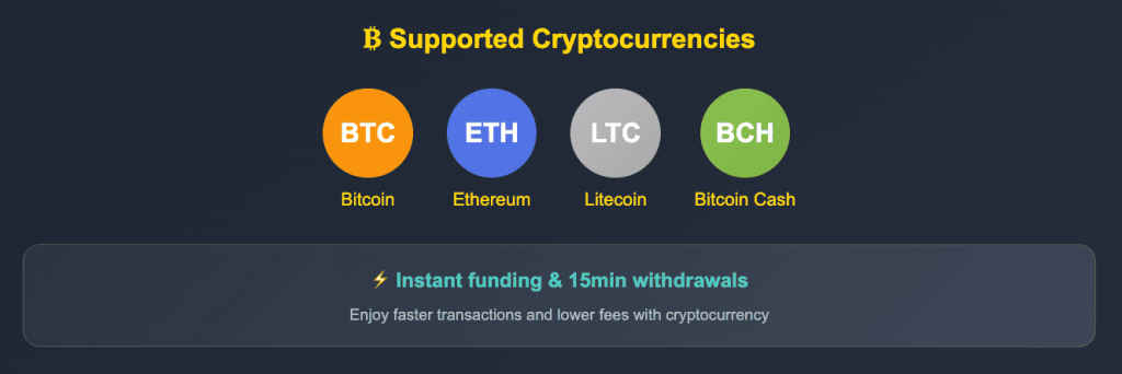 Payouts using crypto are faster, with your real money arriving in fifteen minutes or less after the approval of the request. On the crypto bonus list are the lower fees associated with crypto deposits and withdrawals.