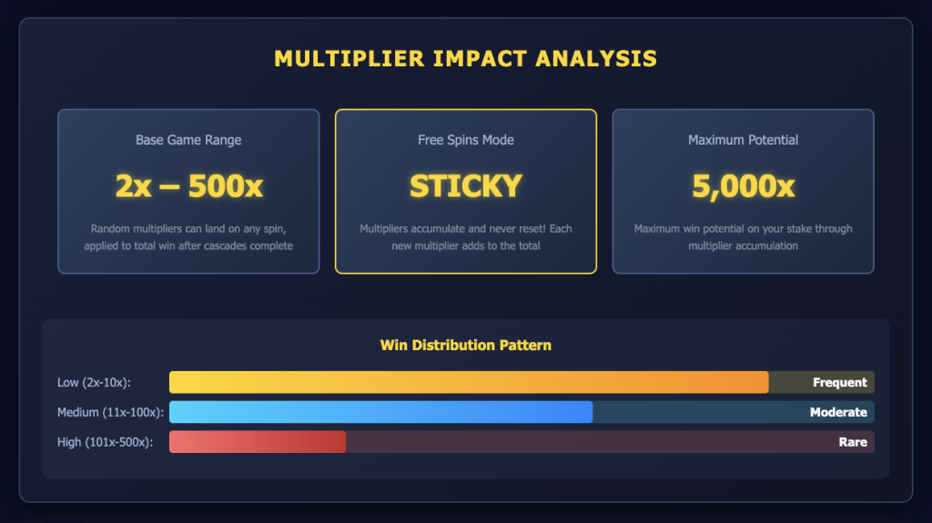 Multipliers | 2x – 500x in base and FS | Up to 100x | No multipliers |