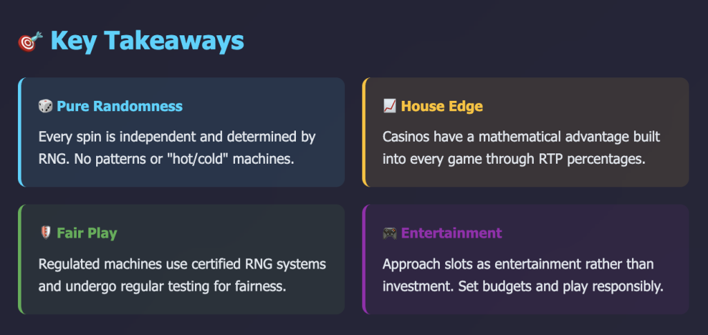 No matter how it looks on the surface, the outcome always comes down to those random numbers and the game’s internal logic. That’s how casino slot machines work; basic in appearance, but carefully made to balance wins, excitement and randomness.