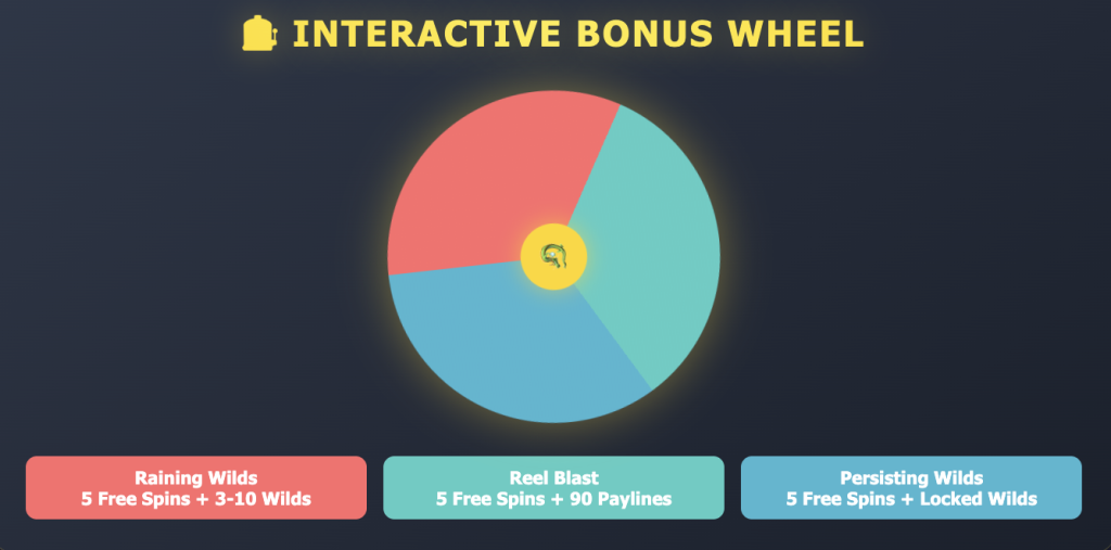 - Raining Wilds Free Games: This feature awards five free spins with 3 to 10 wilds added randomly to the reels at the start of each spin. The wilds will stay in place until the round ends.