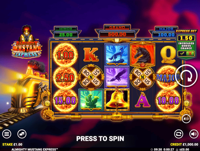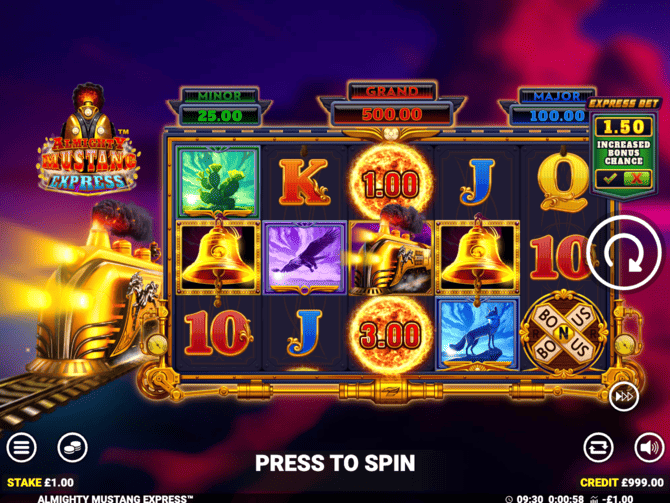 Almighty Mustang Express includes a free spins feature that complements the CashLock bonus system. The free spins round provides multiple chances to land winning combinations without additional bet costs. During free spins, the CashLock feature can trigger, combining both bonus mechanics for enhanced win potential. This layering of features creates opportunities for substantial payouts as free spins continue. The exact number of free spins awarded depends on the triggering combination, following standard slot bonus practices.