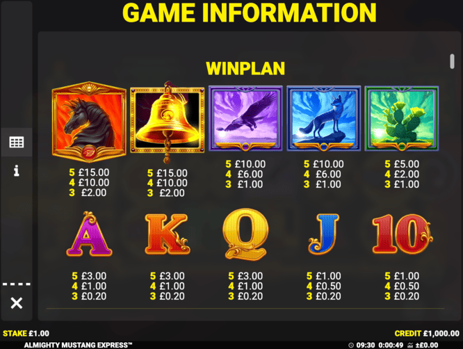 Blueprint Gaming has not released detailed paytable information in publicly available materials. The Almighty Mustang Express slot demo provides the most direct way to examine exact symbol values and payout multipliers. However, the game follows standard slot payout hierarchy principles. Higher-value symbols typically include thematic icons related to the mustang and western wilderness. Lower-value symbols likely consist of traditional card ranks from 10 through Ace. Each symbol pays according to how many matching icons land consecutively on a payline from left to right.