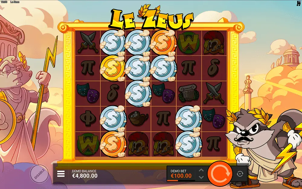 Le Zeus uses a 6-reel, 5-row grid (6x5), giving you a larger play area than classic slots.