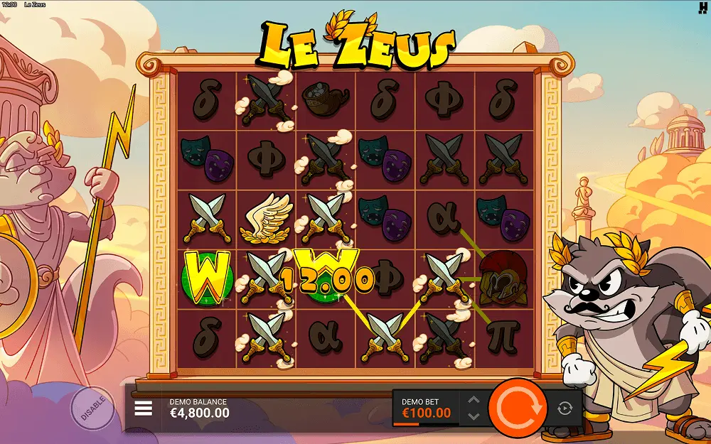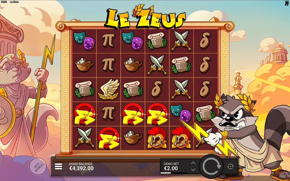 Le Zeus has an RTP of up to 96.26% (casino-dependent) and a maximum win of 20,000x your bet.