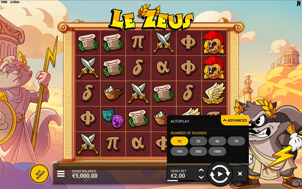Le Zeus gameplay packs essential controls designed for efficient play across all platforms. The autoplay feature enables players to run a preset number of spins automatically, streamlining gameplay when testing features without manual intervention.