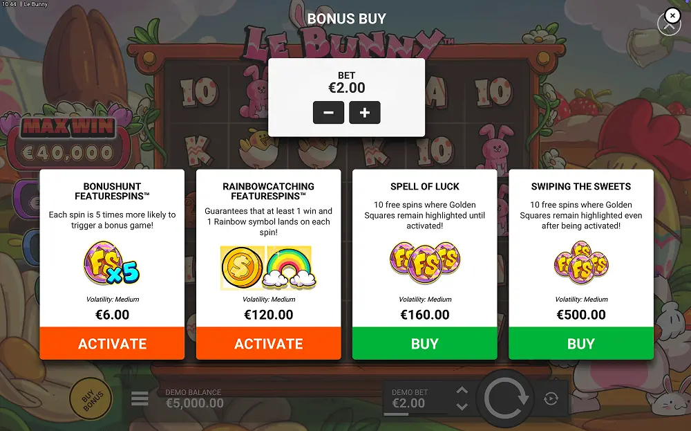 Wild symbols substitute for standard pay symbols, helping complete clusters and increasing overall hit frequency. Special symbols such as scatters or bonus triggers activate features when landing in predetermined quantities or positions. The Le Bunny slot demo replicates all symbol behaviors and paytable structures, offering transparent insight into win mechanics without financial risk. Players can reference the in-game information panel to review cluster requirements, feature rules, and maximum win calculations before adjusting bet sizes or activating Bonus Bet.