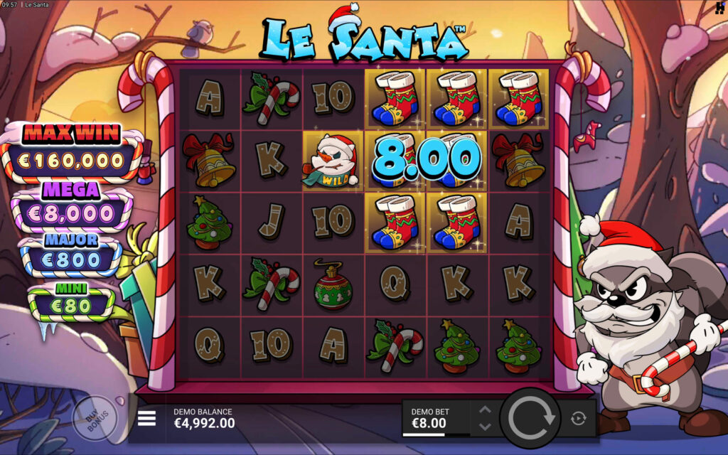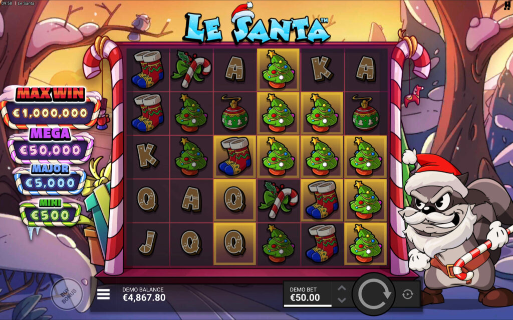 Within Le Santa free spins rounds, multipliers expand substantially — base game 2x multipliers increase to 3x or 4x, while maximum multipliers potentially reach 10x compared to base 5x limits. Sticky wild symbols frequently lock throughout the entire bonus sequence, accumulating across multiple cascades generating substantial multi-symbol payouts.