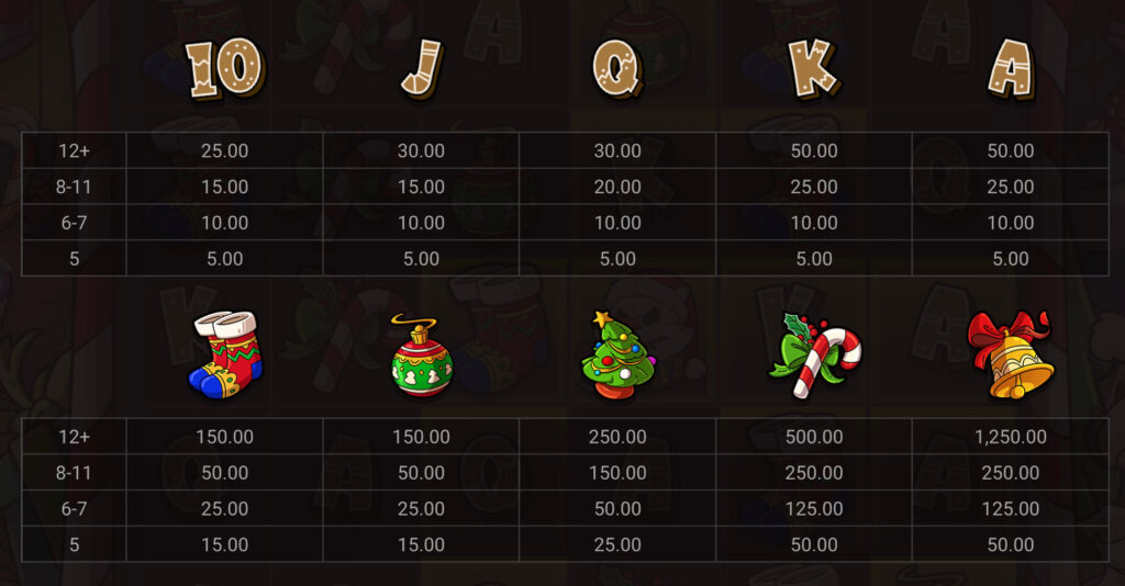 The Christmas tree serves as the second-highest paying symbol, rewarding substantial wins with four or five combinations. Standard card symbols (Ace through King) provide frequent small wins during regular play. Special multiplier symbols emerge during bonus rounds, enhancing win values from 2x to 10x when combined with other combinations.