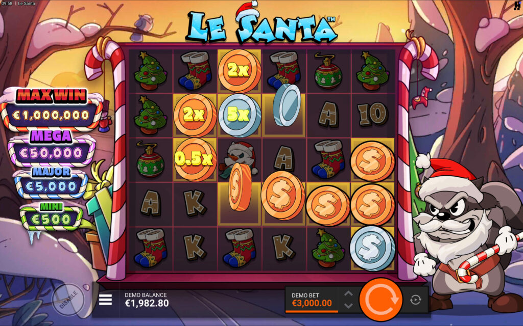 Le Santa multipliers enhance base game wins through symbol-triggered multiplication mechanics. When special multiplier symbols land adjacent to winning combinations, they multiply total payouts by designated values ranging from 2x to 10x.