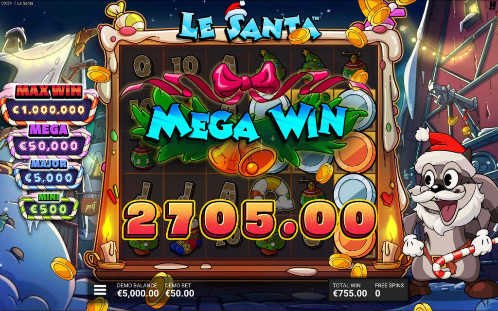 Retriggers during the bonus round add additional free spins automatically — potentially extending gameplay significantly. The x multiplier accumulates across retriggered spins, compounding Le Santa multiplier potential substantially. This interaction creates the maximum win scenarios within Le Santa slot features!