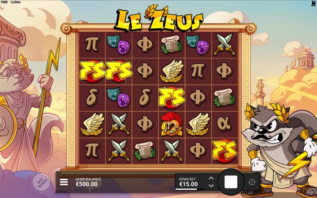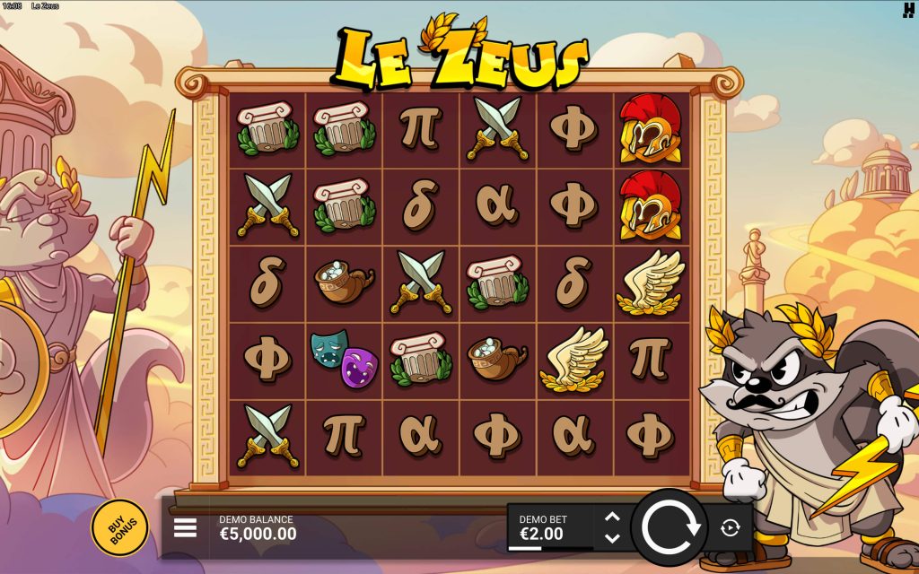 The storyline of the Le Zeus online slot takes you straight up to Mount Olympus. Instead of a serious Zeus, the game features Smokey the Raccoon dressed as the god of thunder. He holds divine power and fiery lightning bolts, keeping things fun while still being in line with the theme of gods and Olympus.
