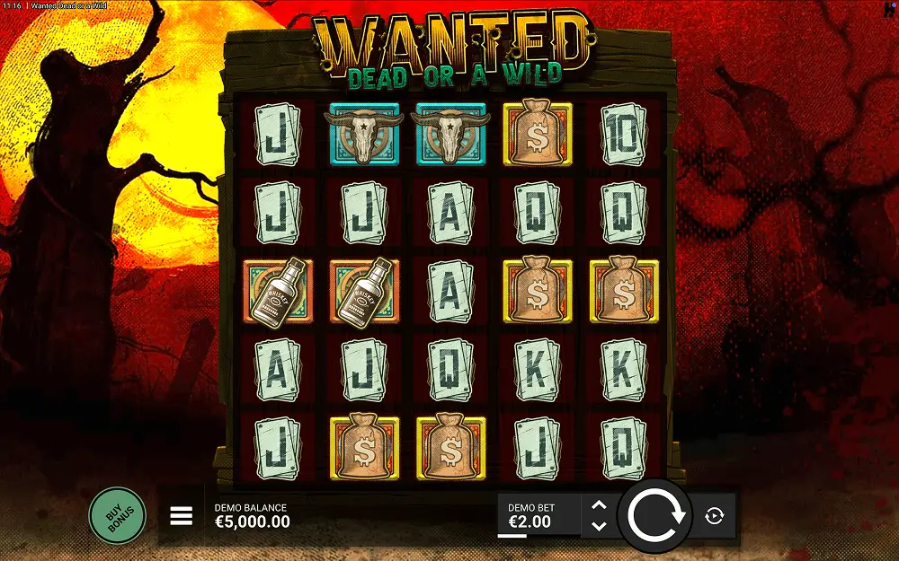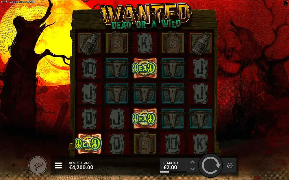 - Play the Wanted Dead or a Wild demo first. Don’t risk any real money right away. Before you decide to play for real stakes, start with the demo version until you learn the basics (unique features, mechanics, and volatility).
