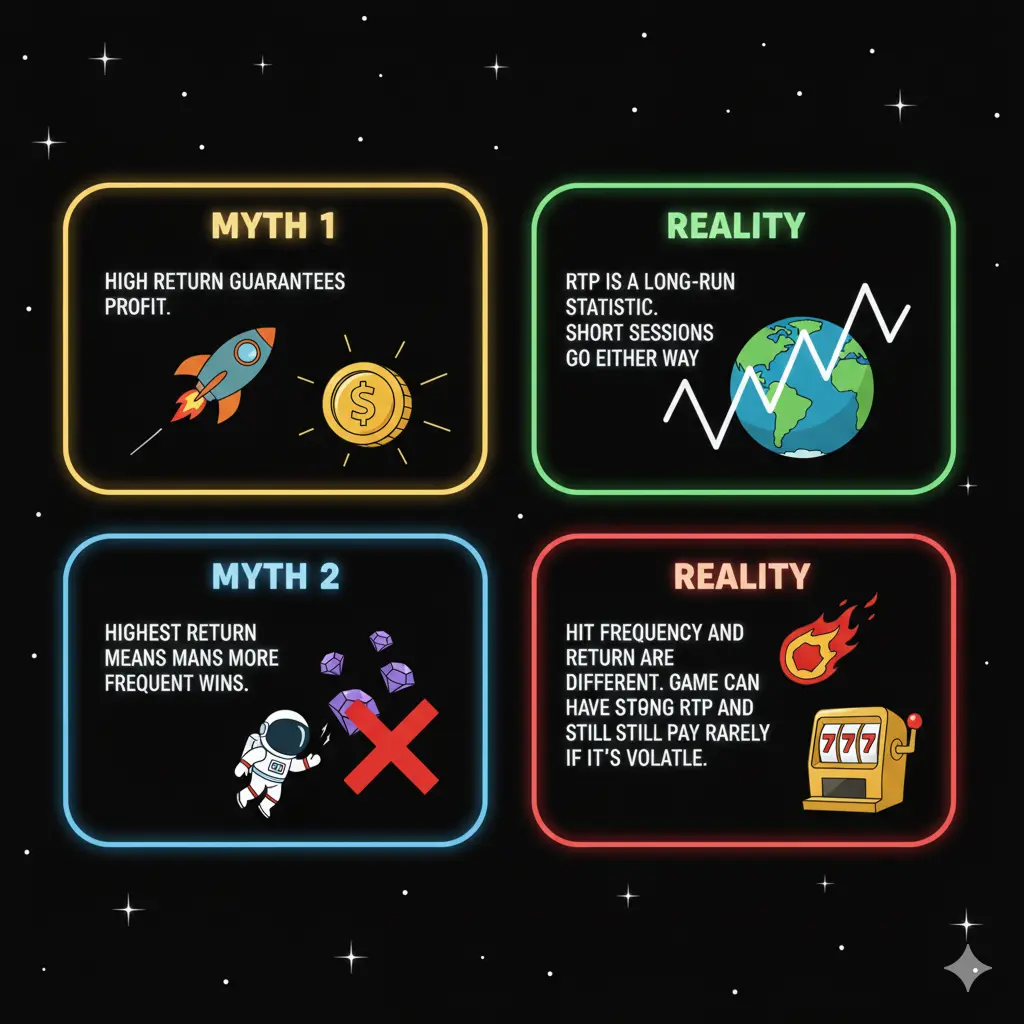 Reality: hit frequency and return are different. A game can have strong RTP and still pay rarely if it’s volatile.