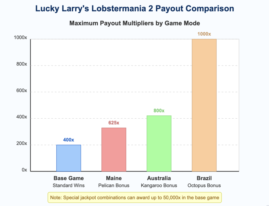 - Lobstermania bonus – Players can choose between Maine, Brazil and Australia, with each offering unique multipliers and prizes in this bonus feature.