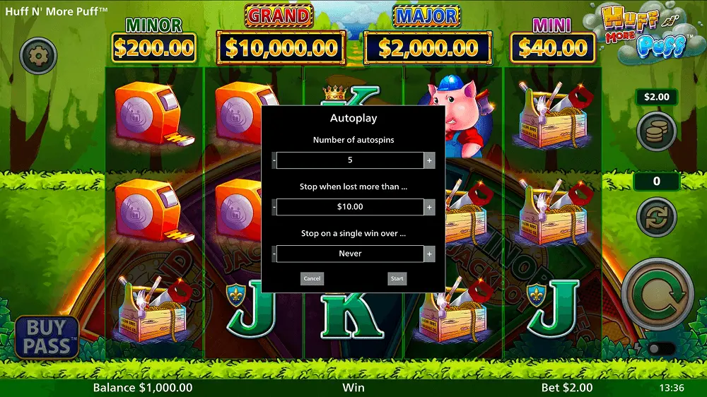 - Launch the Huff N’ More Puff slot on desktop or mobile.