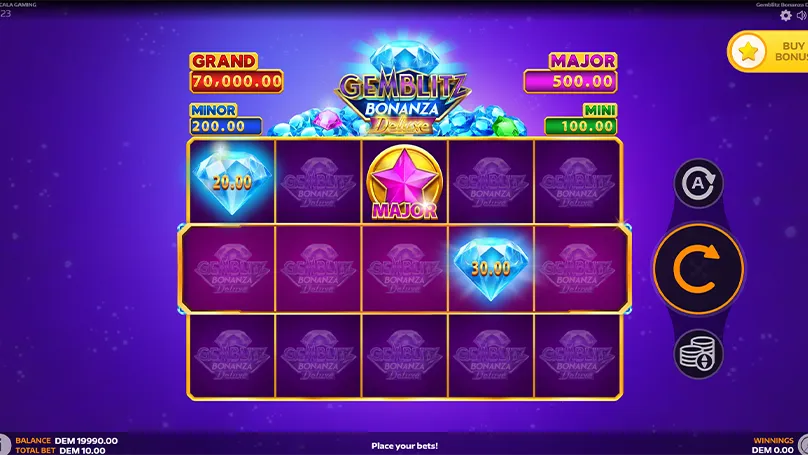 The Gemblitz Bonanza Deluxe slot game comes with several creative features that keep the action exciting: