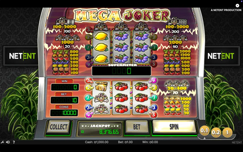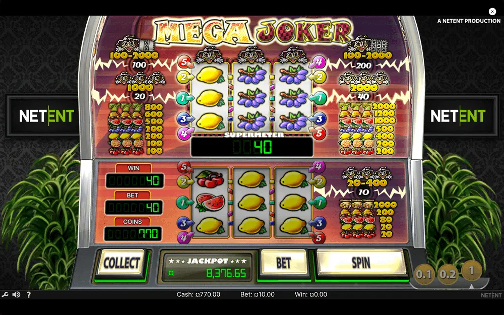 Do not expect extensive bonus rounds. Bonus features include a progressive jackpot and a supermeter mode. These features make the Mega Joker Slot more exciting thanks to greater rewards, higher stakes, and higher risks.