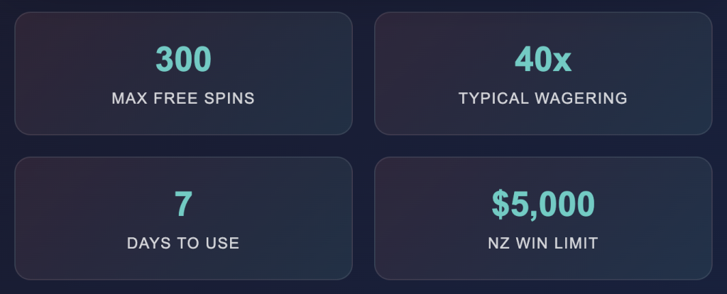 These fall under the 300 deposit bonus New Zealand casino bonus. They come with deposits. The downside is that the 300 extra chances are not credited at once. Depending on the amount you fund, you can obtain up to 100 FS max.