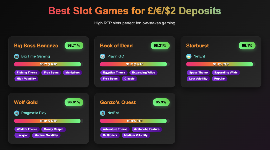 You can enjoy the games you love without a hitch on $2 platforms, as long as you have picked the best platform based on game variety. While slots remain the most popular title you will find, table and crash titles will add diversity to the library. Not sure of what games you can play with $2? Here are a few suggestions for you.