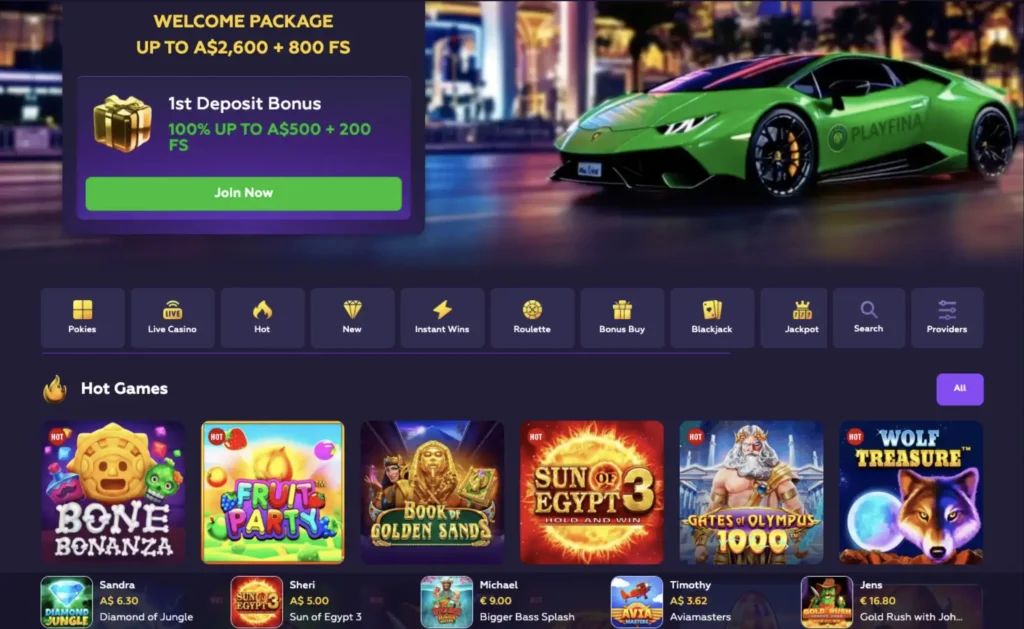The playfina welcome package reaches up to $1,000 plus spin rewards across the first three deposits. The tournaments and loyalty program spans 175 levels, and the weekly promotional calendar in the bonus section offers structured casino bonuses for every day of the week. There is no dedicated Playfina casino app, but the HTML5-optimized browser site covers all functionality on Android and iOS devices.