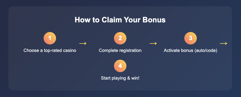 Getting the $200 no deposit bonus 200 free spins TX package can be quite easy if you follow the procedure. Sites ensure that the process is seamless so that new punters can get access to games without stress. In order to put things into proper perspective, we put out this detailed guide.