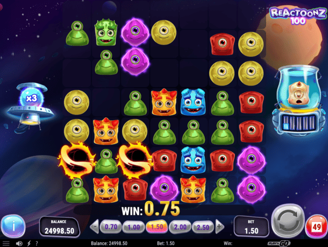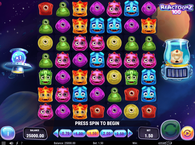 Play’n GO built Reactoonz 100 slot with mobile-optimized graphics that scale appropriately across device types. The 7×7 grid maintains visual clarity on smaller smartphone screens without sacrificing detail or readability. Symbol designs feature bold outlines and high-contrast color choices that remain distinct even at reduced display sizes. Animation sequences activate when clusters form, showing the winning symbols reacting before clearing from the grid. The Quantum feature modifiers each carry unique visual effects: Implosion displays expanding circles from converted wilds, Alteration shows symbol transformations with color shifts, Demolition eliminates one-eyed toons with particle effects, and Incision cuts diagonally through the grid with laser-like precision. These animations provide immediate feedback about which modifier has engaged, reducing confusion during complex multi-feature activations.