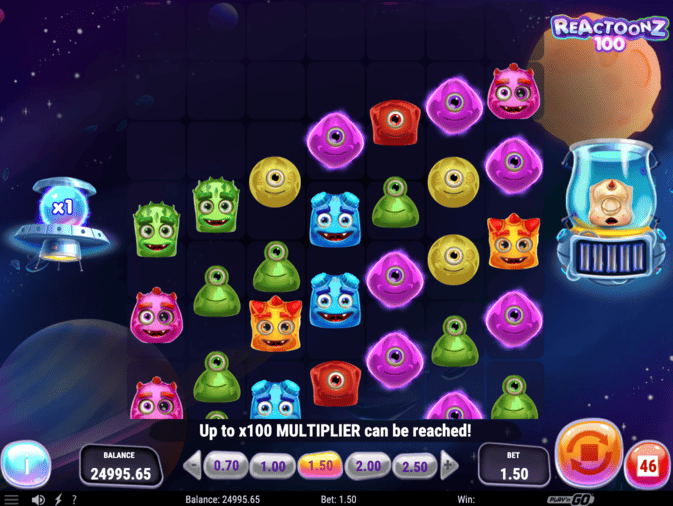Reactoonz 100 slot represents Play’n GO’s bold approach to alien-themed gaming entertainment. Released in 2025, this title builds on the studio’s reputation for creating volatile, feature-rich experiences that challenge players with complex mechanics and substantial win potential. The game operates on a 7×7 grid structure, eschewing traditional paylines for a cluster pays system that requires at least five matching symbols to connect horizontally or vertically. Players can wager between $0.20 and $100 per spin, targeting a maximum win of up to 10,000x their total bet. The slot carries a 96.51% return to player percentage, positioning it competitively within the high volatility category. Play’n GO specializes in innovative slot mechanics, and this title demonstrates their commitment to creating visually distinct games with layered bonus structures. The absence of conventional free spins rounds sets Reactoonz 100 apart from standard offerings, instead focusing on progressive multipliers and modifier features that activate through gameplay progression.