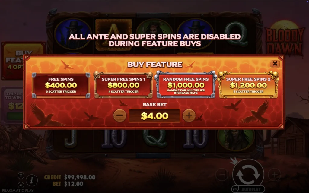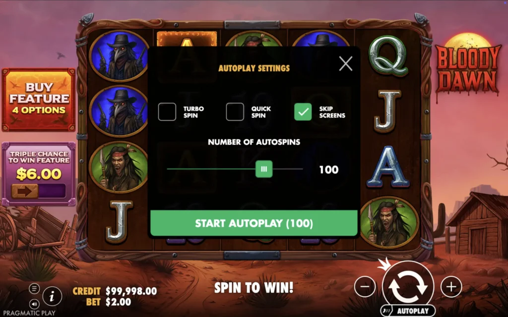 Yes. Bloody Dawn includes a feature-buy option that costs 100× your total bet. Using it launches the free spins round immediately, skipping base game spins and scatter hunting.