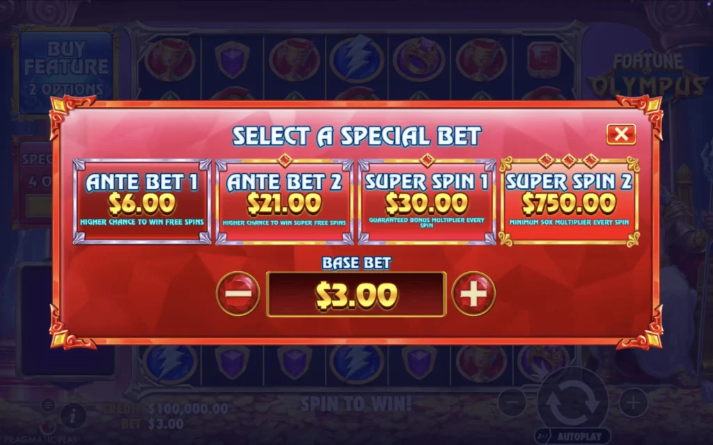 - Ante Bet 2 – 140× bet; increases the chance to trigger bonus rounds and guarantees at least a x5 multiplier.