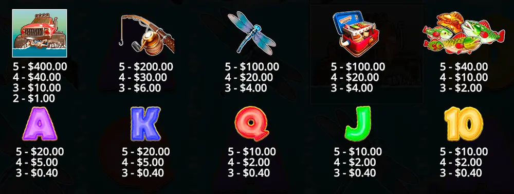 Money Fish symbols show cash values. These values are only paid when they get collected by the Fisherman symbol during feature moments.