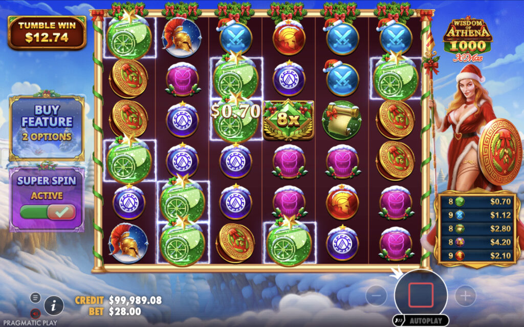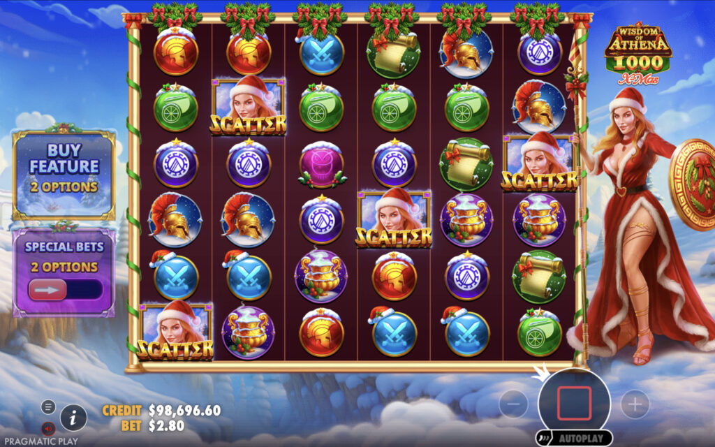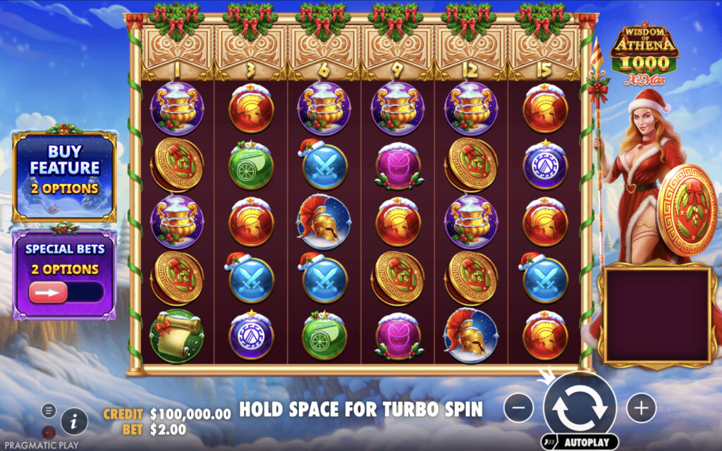 Wisdom of Athena 1000 Xmas crashes with 1,000x maximum win potential. Fire up demo play to nail Athena Xmas symbols and mechanics. Stake 1–2% bankroll per spin — this rule keeps you alive through high volatility swings. Scatters burst free spins with multipliers soaring to 10x. Lock session limits before you spin and never chase losses.