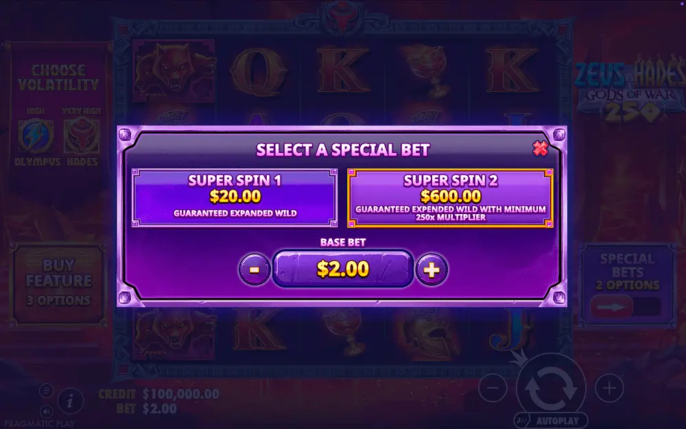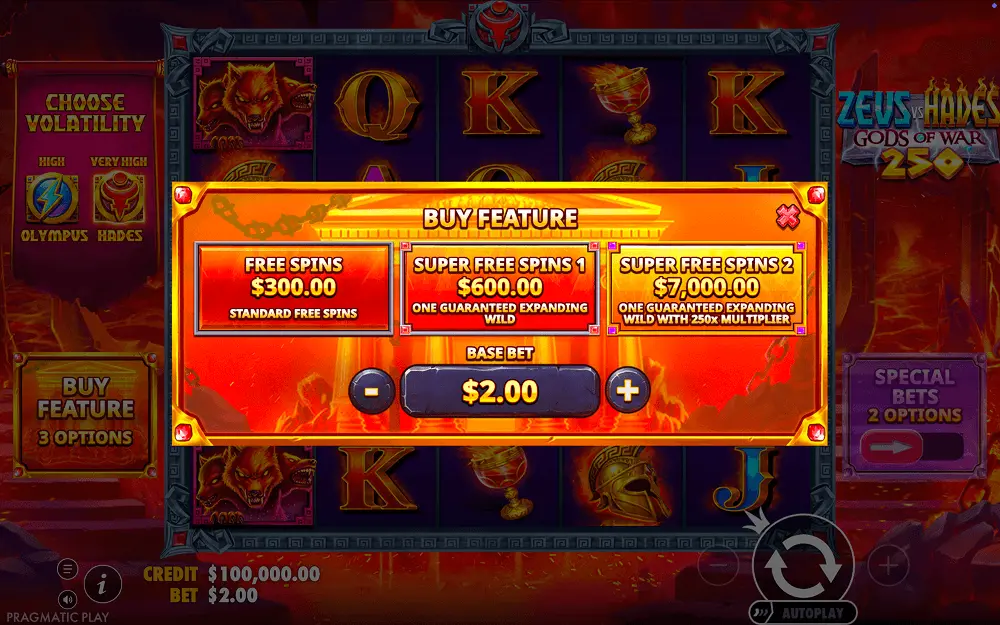Learning how to play Zeus vs Hades 250 is a must for any new player. Firstly, wins are paid from left to right. The high volatility means that you can go long periods without a payout. You must choose between Olympus and Hades modes at the start of each playing session.