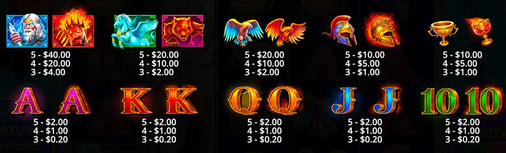 - High-Paying Symbols – Goblet, Helmet, Eagle, Pegasus or Hounds, Zeus or Hades