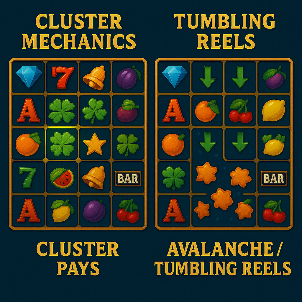 Punters who are used to classic slots will likely find 6×6 gameplay confusing because of the high complexity of its modern mechanics. While you still need to choose your bet size and hit the spin button, how a winning spin is determined can be significantly different. There are 2 mechanics you can notice in these slots.