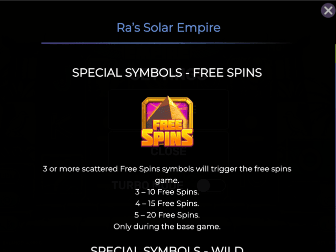 Ra’s Solar Empire online game features a hierarchical symbol system where golden-peaked pyramids serve dual purposes as scatter symbols triggering Free Spins and potential retriggering during bonus rounds. Medium-tier symbols include thematic Egyptian icons with the golden scarab positioned among higher-value standard symbols, followed by the ankh, scorpion, cobra and solar orb in descending payout order. During base gameplay, these symbols create winning combinations across paylines when matching symbols land on consecutive reels from left to right following standard slot conventions. The Horus wild symbol appears exclusively during Free Spins rounds, substituting for all symbols except pyramids to complete winning patterns that might otherwise fall short by a single symbol.