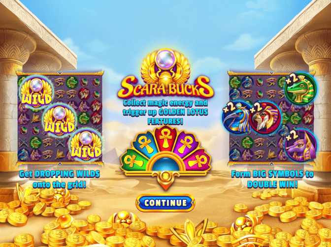 Playing Scara-Bucks begins with selecting your bet size between $0.10 and $70 using the stake adjustment controls located at the bottom of the game interface. After setting your preferred wager, click the spin button to activate the 7×7 grid where symbols cascade into position. Unlike traditional payline slots, Scara-Bucks uses cluster pays mechanics requiring connected groups of matching symbols to form winning combinations.